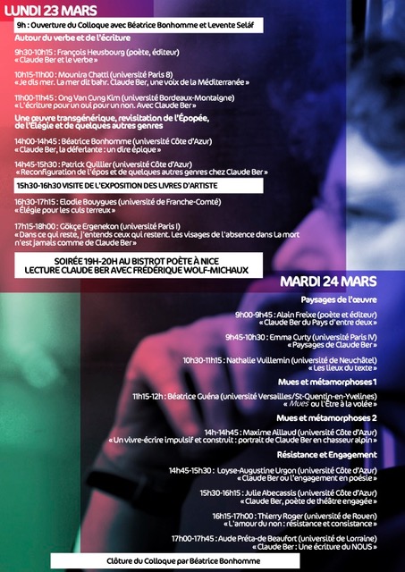 CLAUDE BER JANVIER 2026: ENTRETIEN C. BER DANS RECOURS AU POEME -COLLOQUE CLAUDE BER LES 23 ET 24 MARS 2026 A LUNIVERSITÉ DE NICE CÔTE D'AZURTrès bonne année à toutes et tous sous le signe de la plénitude personnelle et de la paix dans le monde.